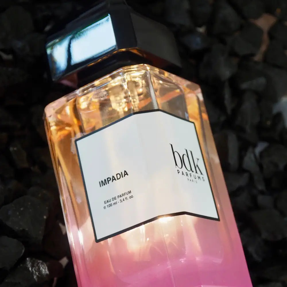 BDK Parfums Impadia, floral fruity gourmand, avec des notes principales de rose, pêche et vanille, lancé en 2025 par Jordi Fernandez.
